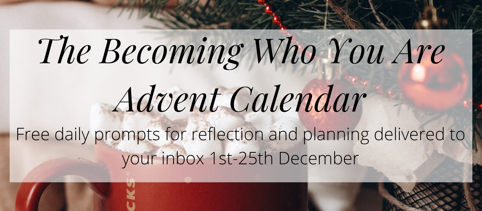 The Becoming Who You Are Advent Calendar is a set of 25 writing prompts leading up to Christmas. It’s a review of the year that has been and an opportunity to dream and scheme for the year to come. It’s a chance for you to add some reflective time to a busy month and create space to review 2023 while exploring possibilities 2024.